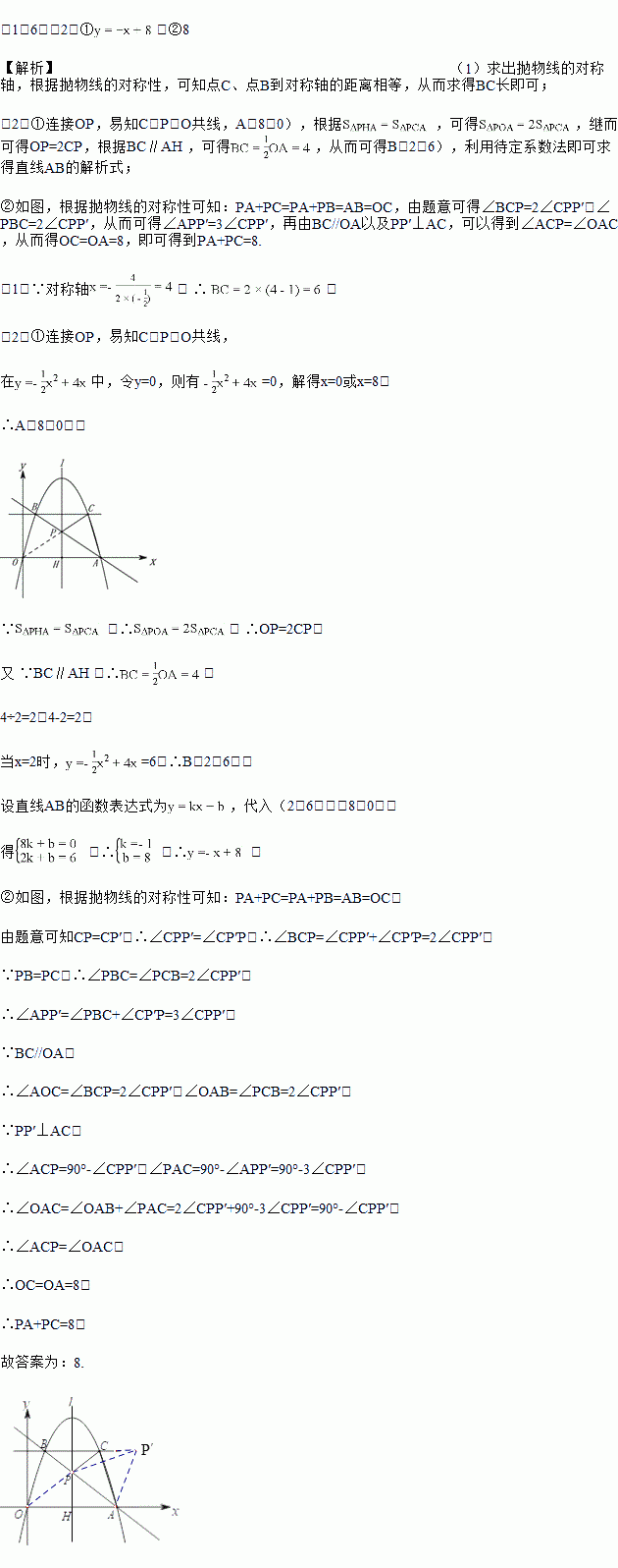 ②记点P关于AC的对称点为P',若P'恰好落在直线BC上,则PC+AP的值为_____.(直接写出答案)