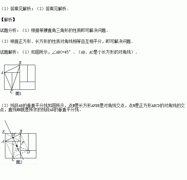 (1)在图1中画出一个45°角,使点A或点B是这个角的顶点,且AB为这个角的一边;