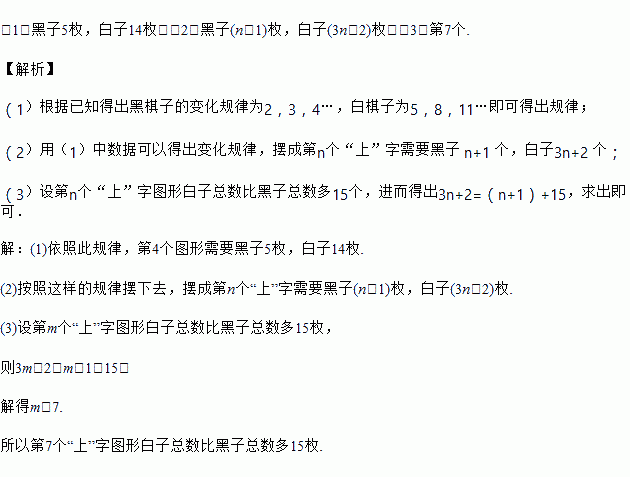(3)请探究第几个“上”字图形白子总数比黑子总数多15枚.
