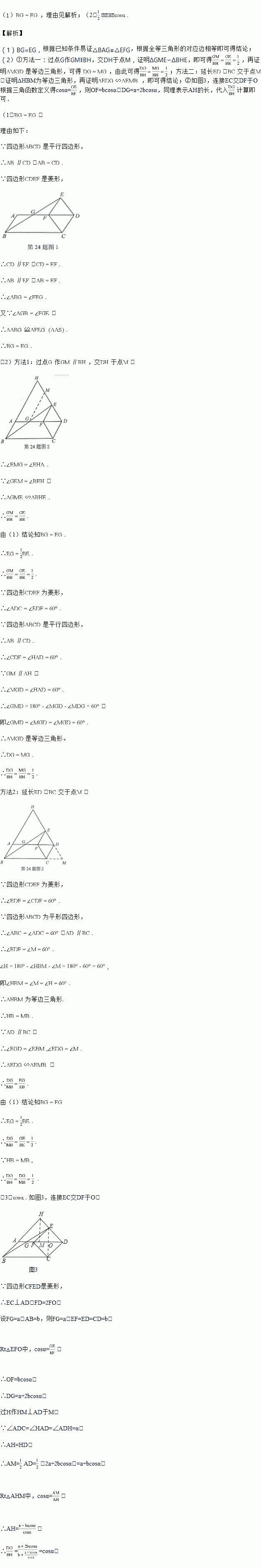如图1,以□ABCD的较短边CD为一边作菱形CDEF,使点F落在边AD上,连接BE,交AF于点G.
