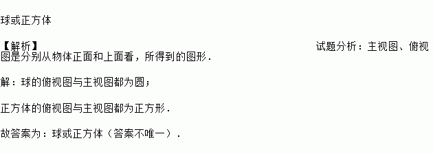 写出一个在三视图中俯视图与主视图完全相同的几何体 .