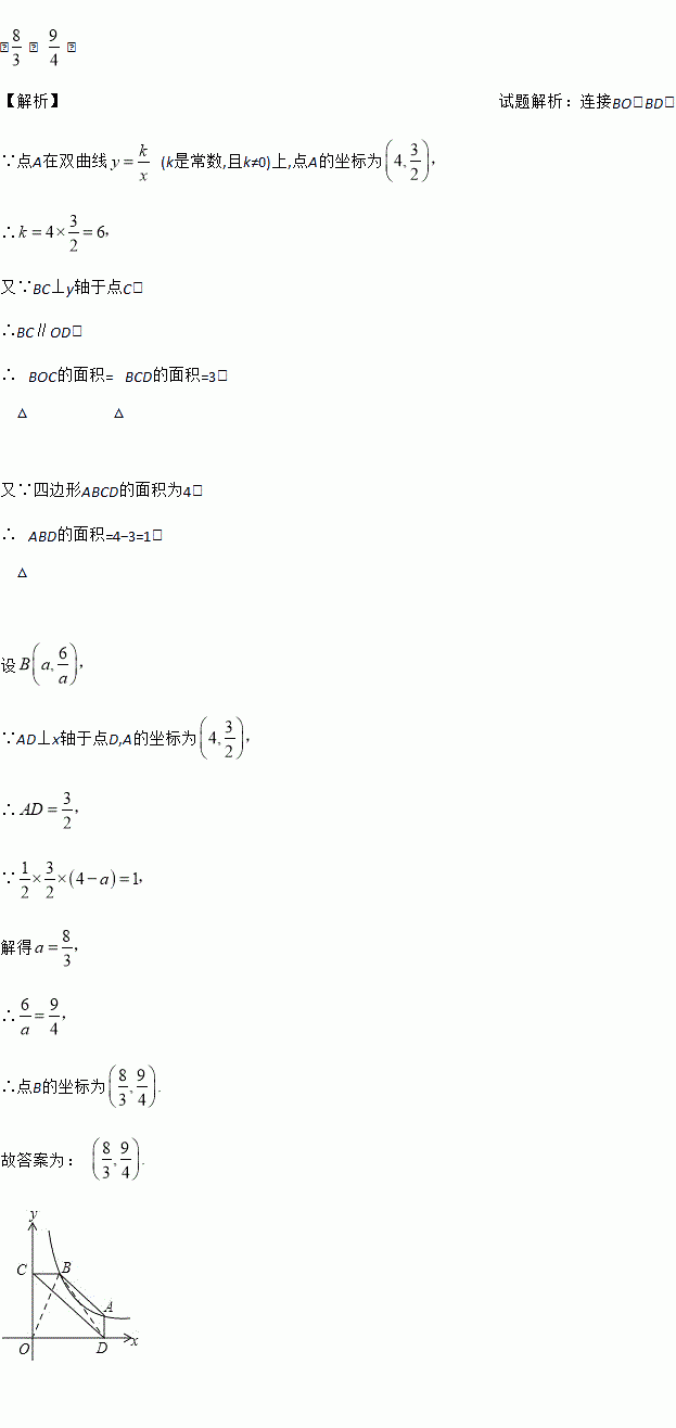 (k是常数,且k≠0)上,过点A作AD⊥x轴于点D,过点B作BC⊥y轴于点C,已知点A的坐标为(4,