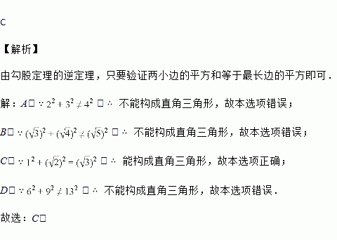 以下列各组数据中的三个数作为三角形的边长,其中能构成直角三角形的是