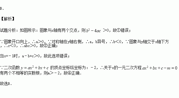 <0;②abc>0;③a﹣b+c<0;④m>﹣2,其中,正确的个数有( )