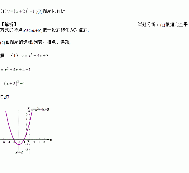 (1)用配方法将y = x2 +4x +3化成的形式;