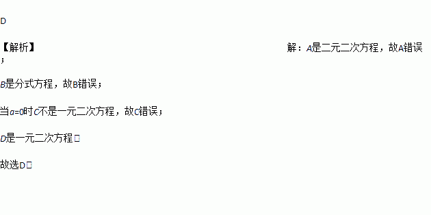 下列方程中,关于x的一元二次方程是( )