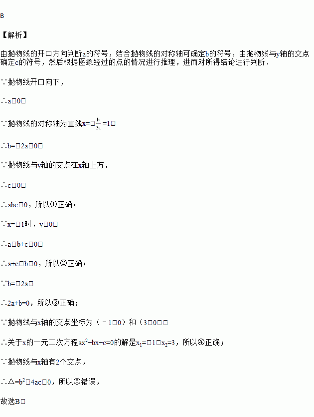 ①abc<0;②a+c>0;③2a+b=0;④关于x的一元二次方程ax2+bx+c=0的解是x1=﹣1,x2=3⑤b2<4ac