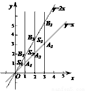 如图,在直线l1⊥x轴于点(1,0),直线l2⊥x轴于点(2,0),直线l3⊥x轴于点(n,0)……直线ln⊥x轴于点(n,0).函数y=x的图象与直线l1,l2,l3,…,ln分别交于点B1,B2,B3,…,Bn.如果△OA1B1的面积记为S1,四边形A1A2B2B1的面积记作S2,四边形A2A3B3B2的面积记作S3,……四边形An-1AnBnBn-1的面积记作Sn,那么S2017=_______.