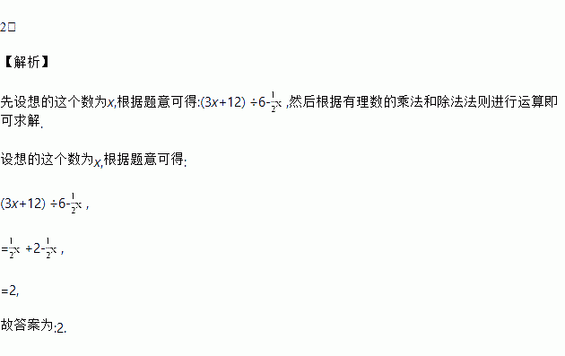 小明说:“请你任意想一个数,把这个数乘3后加12,然后除以6,再减去你原来所想的那个数的,我可以知道你计算的结果.”请你写出这个结果是_____.