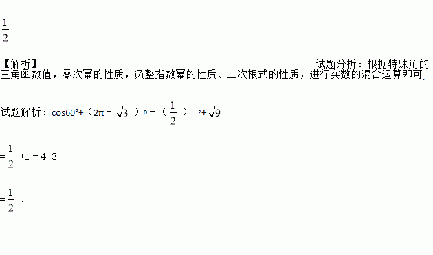 计算:cos60°+(2π﹣
