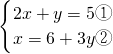 ,把②代入①得,2(6+3y)+y=5,解得y=-1;