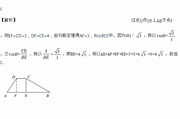 如图,拦水坝的横断面为梯形ABCD,已知AD=5 m,DC=3 m,CE=4 m,CB的坡度 i =1∶
