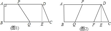 (2)如图2,当四边形PQCD是等腰梯形,作DF∥PQ交BC于F,作DE⊥BC于E,