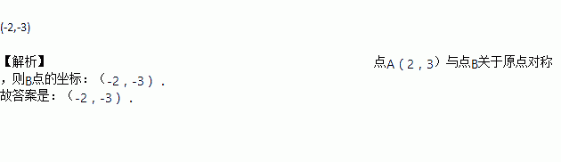 点A(2,3)与点B关于原点对称,则B点的坐标 ____________。