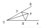 如图,点P是∠AOB内任意一点,OP=5cm,点M和点N分别是射线OA和射线OB上的动点,∠AOB=30°则△PMN周长的最小值=________