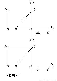 如图,点A(-10,0),B(-6,0),点C在y轴的正半轴上,∠CBO=45°,CD∥AB,∠CDA=90°.点P从点Q(8,0)出发,沿x轴向左以每秒1个单位长的速度向点A匀速运动,运动时间为t秒.