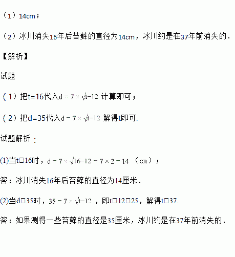 (2)如果测得一些苔藓的直径是35厘米,问冰川约是在多少年前消失的?