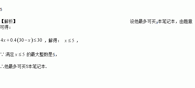 小明用元钱买笔记本和练习本共本,已知每个笔记本元,每个练习本元,那么他最多能买笔记本__________本.