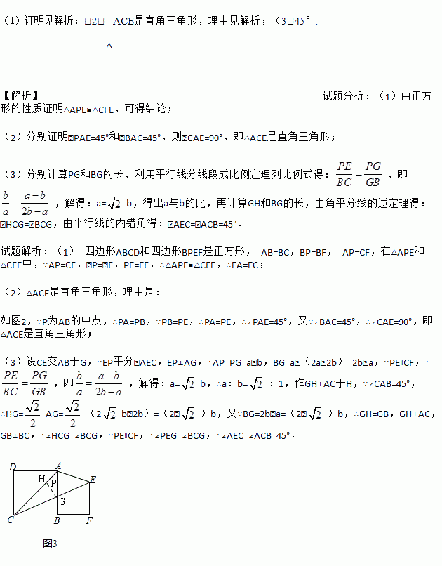 (3)如图3,若点P在线段AB上,连接AC,当EP平分∠AEC时,设AB=a,BP=b,求a:b及∠AEC的度数.