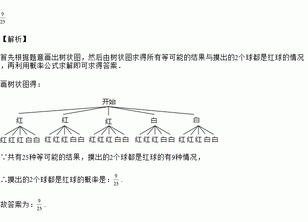 一个布袋里装有只有颜色不同的个球,其中个红球,个白球.从中任意摸出个球,记下颜色后放回,搅匀,再任意摸出个球,摸出的个球都是红球的概率是________.