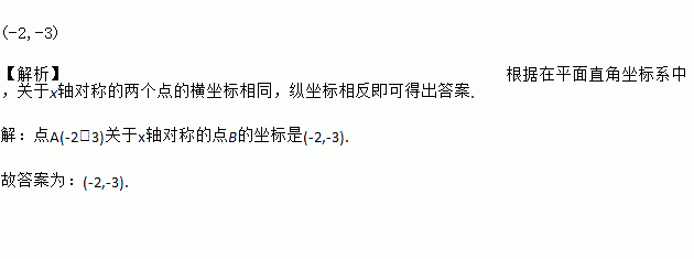 点A(-2,3)关于x轴对称的点B的坐标是_____