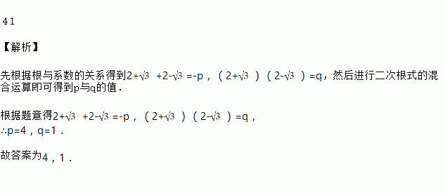 一元二次方程x2+px+q=0的两根分别为2+,2﹣,则p=_____,q=_____.
