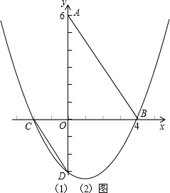 £¨2£©¸ù¾ÝµãB¡¢CµÄ×ø±êÉè½»µãʽ½âÎöʽy=a£¨x+2£©£¨x-4£©£¬È»ºó°ÑµãDµÄ×ø±ê´úÈëÇó³öaµÄÖµ£¬¼´¿ÉµÃµ½Å×ÎïÏß½âÎöʽ£¬È»ºó×÷³ö´óÖÂͼÏó¼´¿É£»