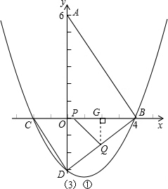£¨3£©ÏÈÓÃt±íʾ³öCP¡¢BQ¡¢BPµÄ³¤¶È£¬²¢¸ù¾ÝµãB¡¢DµÄ×ø±êÇó³öOB¡¢ODµÄ³¤¶È£¬¸ù¾Ý¹´¹É¶¨ÀíÇó³öBDµÄ³¤¶È£¬È»ºó·Ö¢ÙQP=QBʱ£¬¹ýQ×÷QG¡ÍBCÓÚG£¬¸ù¾ÝÈý½ÇÐÎÈýÏߺÏÒ»µÄÐÔÖʿɵÃBG=