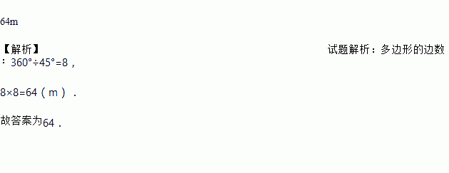 小亮从A点出发前进8m,向右转45度,再前进8m,又向右转45度,…,这样一直走下去,他第一次回到出发点A时, 一共走了_____________ m.
