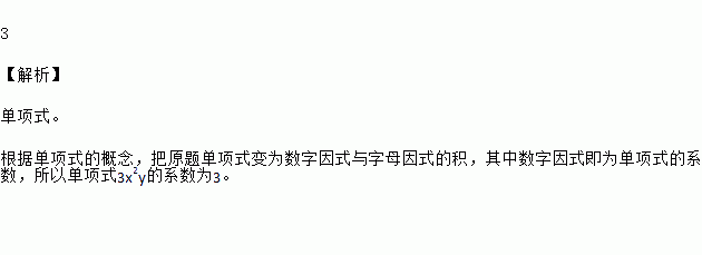 单项式3x2y的次数为 _____.