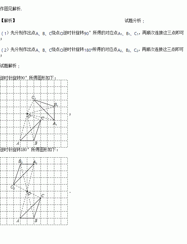 如图,分别画出△ABC绕点O逆时针旋转90°和180°后的图形.