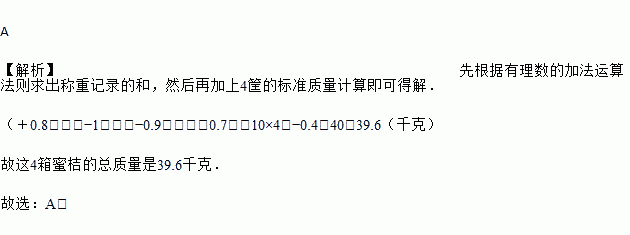 蜜桔采摘开始啦每箱蜜桔以10千克为基准,超过的千克数记为正,不足的千克数记为负,记录如图,则这4箱蜜桔的总质量是 千克