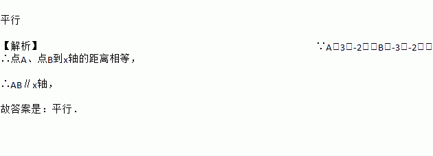 在坐标系中,已知两点A(3,-2)、B(-3,-2),则直线AB与x 轴的位置关系是__________。