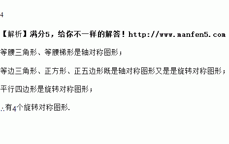 在下列图形中:等腰三角形、等边三角形、正方形、正五边形、平行四边形,等腰梯形,其中有_____个旋转对称图形.