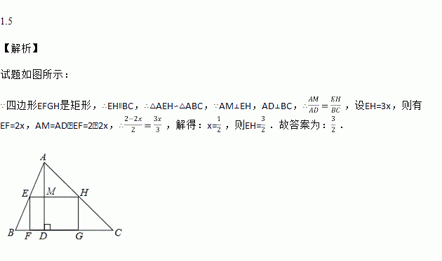 如图,矩形EFGH内接于△ABC,且边FG落在BC上.若BC=3,AD=2,EF=EH,那么EH的长为___.