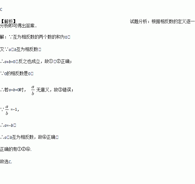 下列说法:①若a、b互为相反数,则a+b=0;②若a+b=0,则a、b互为相反数;③若a、b互为相反数,则