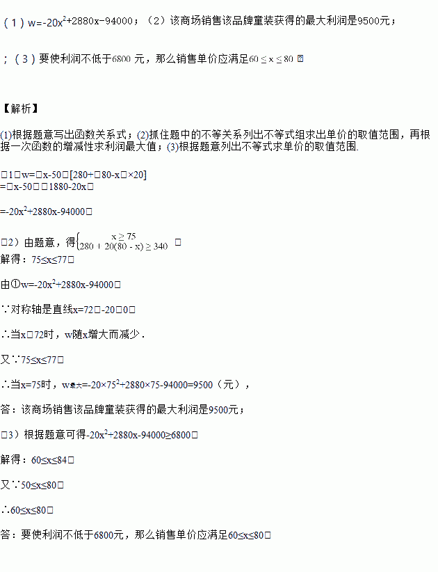 任务,则商场销售该品牌童装获得的最大利润是多少元?