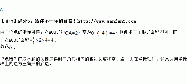 在直角坐标系中A(2,0)、B(-3,-4)、O(0,0),则△AOB的面积( )