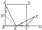 分析:先取AB的中点H,连接EH,根据∠AEF=90°和ABCD是正方形,得出∠1=∠2,再根据E是BC的中点,H是AB的中点,得出BH=BE,AH=CE,最后根据CF是∠DCG的角平分线,得出∠AHE=∠ECF=135°,从而证出△AHE≌△ECF,即可得出AE=EF.