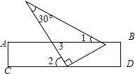 【分析】根据三角形外角性质可得∠3=30°+∠1,由平行线的性质即可得到∠2=∠3=60°,即可解答.