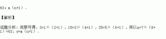 如图,下列各图形中的三个数之间均具有相同的规律,依此规律,那么第4个图形中的x= ,一般地,用含有m,n的代数式表示y,即y= .