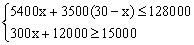 y=(6100﹣5400)x+(3900﹣3500)(30﹣x)=300x+12000。