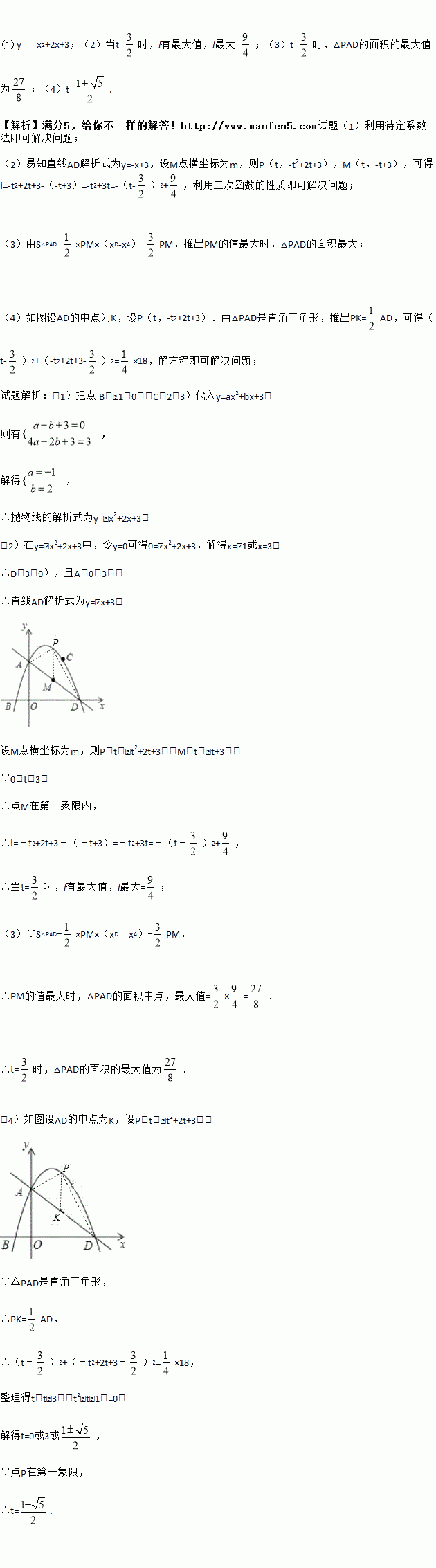 (3)在(2)的条件下,当t为何值时,△PAD的面积最大?并求最大值;