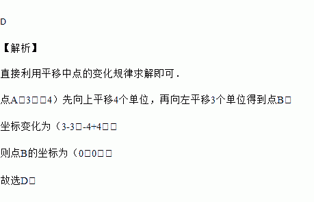 把点A(3,﹣4)先向上平移4个单位,再向左平移3个单位得到点B,则点B坐标为( )
