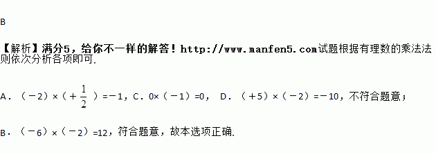 A. (-2)×(+) B. (-6)×(-2) C. 0×(-1) D. (+5)×(-2)