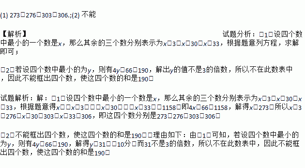 (2)你认为能否框出四个数,使这四个数的和是190.请说明理由.