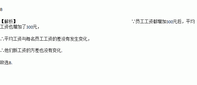 某工厂共有60名员工,他们的月工资方差是s2,现在给每个员工的月工资增加300元,那么他们的新工资的方差( )
