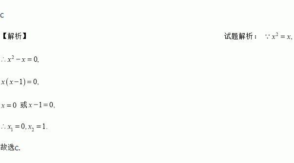 一元二次方程x2=x的解为( )