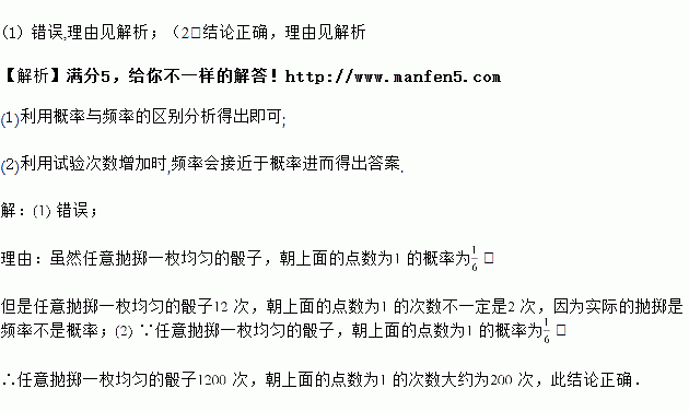 任意抛掷一枚均匀的骰子,朝上面的点数为的概率为![]()
