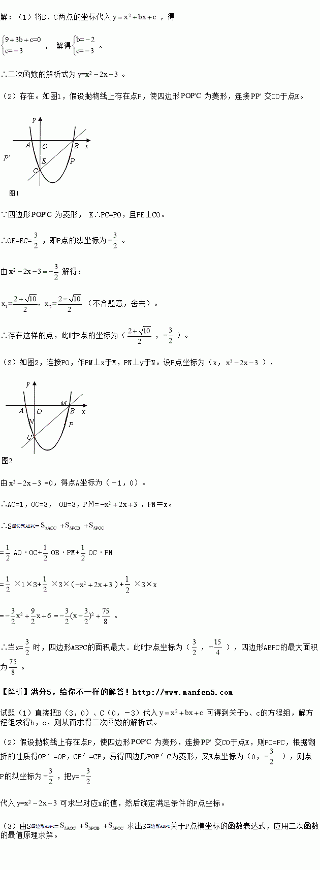 的图象与x轴交于A、B两点,B点的坐标为(3,0),与y轴交于点C(0,-3),点P是直线BC下方抛物线上的一个动点.